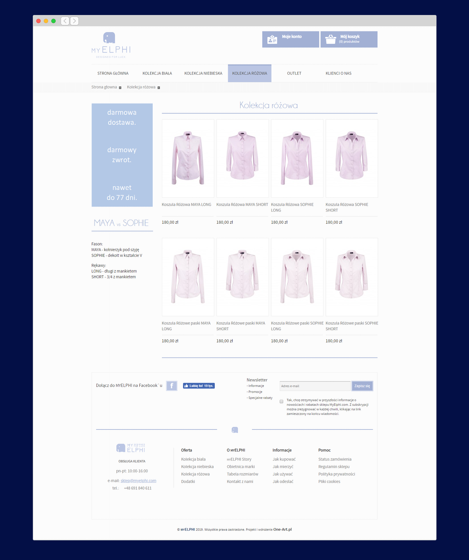 e-commerce site for polish brand MyElphi, design and implementation of online store